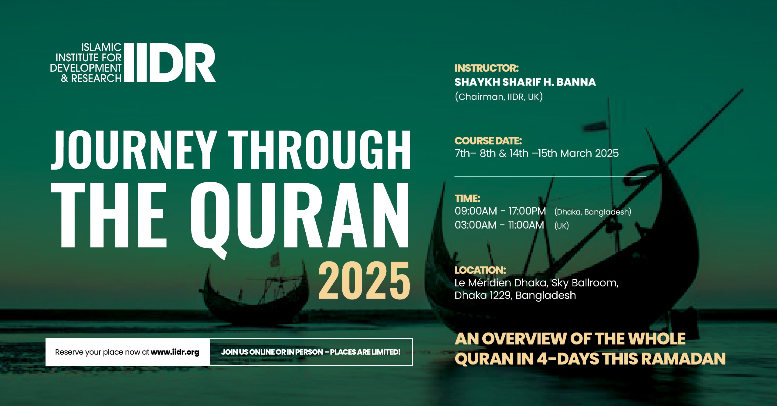 For the first time, IIDR’s flagship course Journey Through the Quran(JTQ) will be delivered in Dhaka, Bangladesh. JTQ has been delivered over the past decade and a half with over 25,000 registered students.